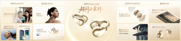 耳夾式耳機 OPPO Enco Clip2 是運動、通勤場景的理想“搭子”,其復刻經典耳環造型并融入全新水滴切面,一體金屬質感,超閃超出片。獨特的超薄自適應鈦片實現了“大耳不疼、小耳不松”的全天無感佩戴體驗,運動場景下也穩固如初。