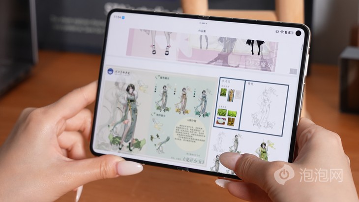 既然叫“大闊折”,在尺寸上它和去年的Pura X就有很大區別,完全是另一條賽道。外屏5.4英寸,內屏7.7英寸,都是接近A4紙的黃金比例,看內容特別舒服,相比二折疊那種幾乎方形的內屏,闊型屏能充分利用起屏幕空間,顯示更多內容。