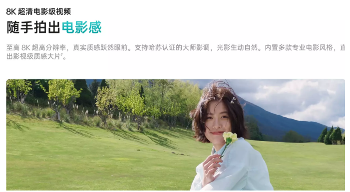 * 8K超清電影級視頻直出:最高支持8K/30fps Log格式視頻錄制,擁有10億色色彩深度。更重要的是,它內(nèi)置了電影風(fēng)格LUT,可以無需復(fù)雜后期調(diào)色,一鍵直出專業(yè)電影風(fēng)格視頻,這對不熟悉調(diào)色的新手來說簡直是福音。