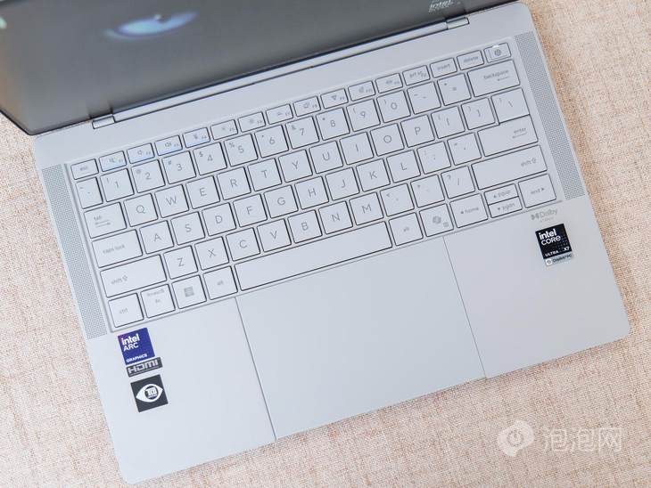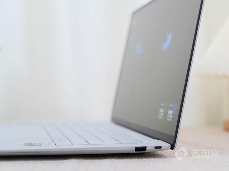 屏幕方面,這款14英寸的筆記本采用了窄邊框設計,屏占比極高,視覺體驗非常沉浸。屏幕表面覆蓋了康寧大猩猩防眩光玻璃,不僅為觸控操作提供了堅實的保護,也有效減少了環境光的反射,即使在明亮的會議室或窗邊使用,畫面依然清晰可見。我們也實測了這塊屏幕的性能表現。