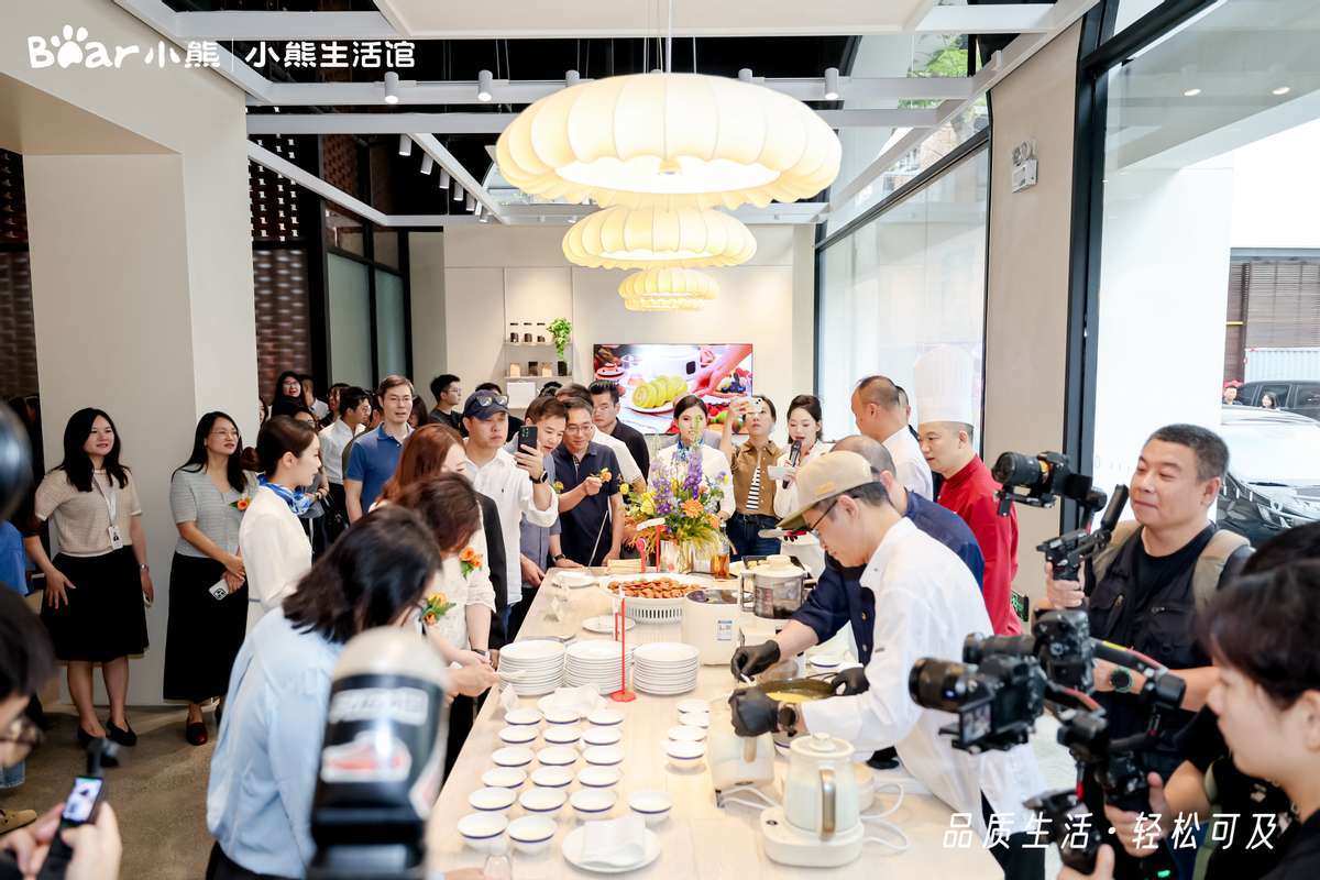 當然,光有場景還不夠,生活方式還包含文化認同和審美滿足。順德是世界美食之都,代代相傳的飲食記憶和“食不厭精”的生活態度,也是小熊電器骨子里帶著的“講究”——當日,小熊電器冠名的“味界芭莎”美食交流活動同步啟動。專業星廚用小熊產品現場烹飪香煎魚腐、老姜醋燒爽鱔等廣府風味菜品,將美食文化與產品自然融合,讓用戶在尋味打卡的過程中直觀感受到“原來無需復雜操作,在家就能輕松復刻地道順德風味”。