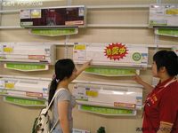 ??? 雖然早已立秋,但恰逢“秋老虎”發(fā)威,天氣依然暑熱。本應(yīng)處于銷售淡季的空調(diào)行業(yè),卻恰恰得益于天氣的利好,迎來(lái)新一輪銷售小高潮。記者在走訪京城各大賣場(chǎng),均能看見空調(diào)柜臺(tái)前熱鬧的場(chǎng)面。據(jù)空調(diào)銷售人員反饋,09空調(diào)行業(yè),得益于國(guó)家“節(jié)能惠民工程”補(bǔ)貼政策和天氣持續(xù)高溫的各方面利好,讓空調(diào)行業(yè)迸發(fā)出了蓬勃向上的銷售場(chǎng)面。 ??? 記者在賣場(chǎng)隨意采訪了幾位正在選購(gòu)空調(diào)的消費(fèi)者,大家紛紛表示受到國(guó)